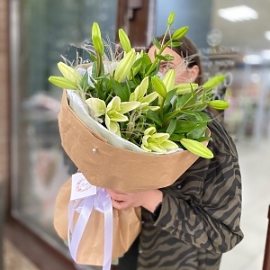 Состав: Лилия - 3 шт. Упаковка дизайнерская - 1 шт.